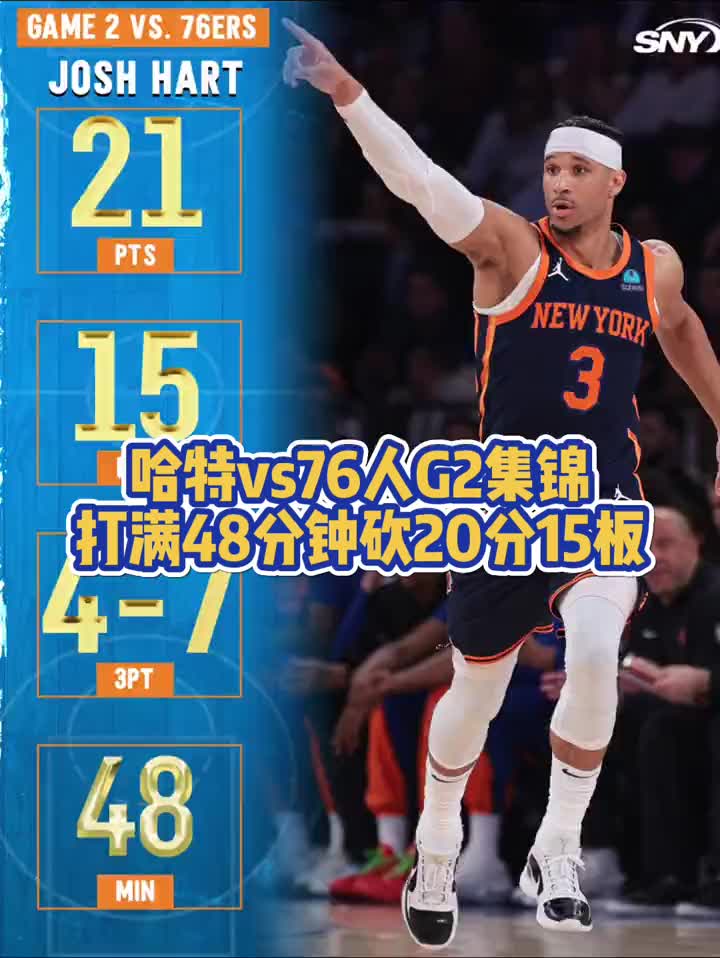真铁人!哈特打满48分钟砍下21分15板3助2断2帽 帮助尼克斯2-0领先76人!