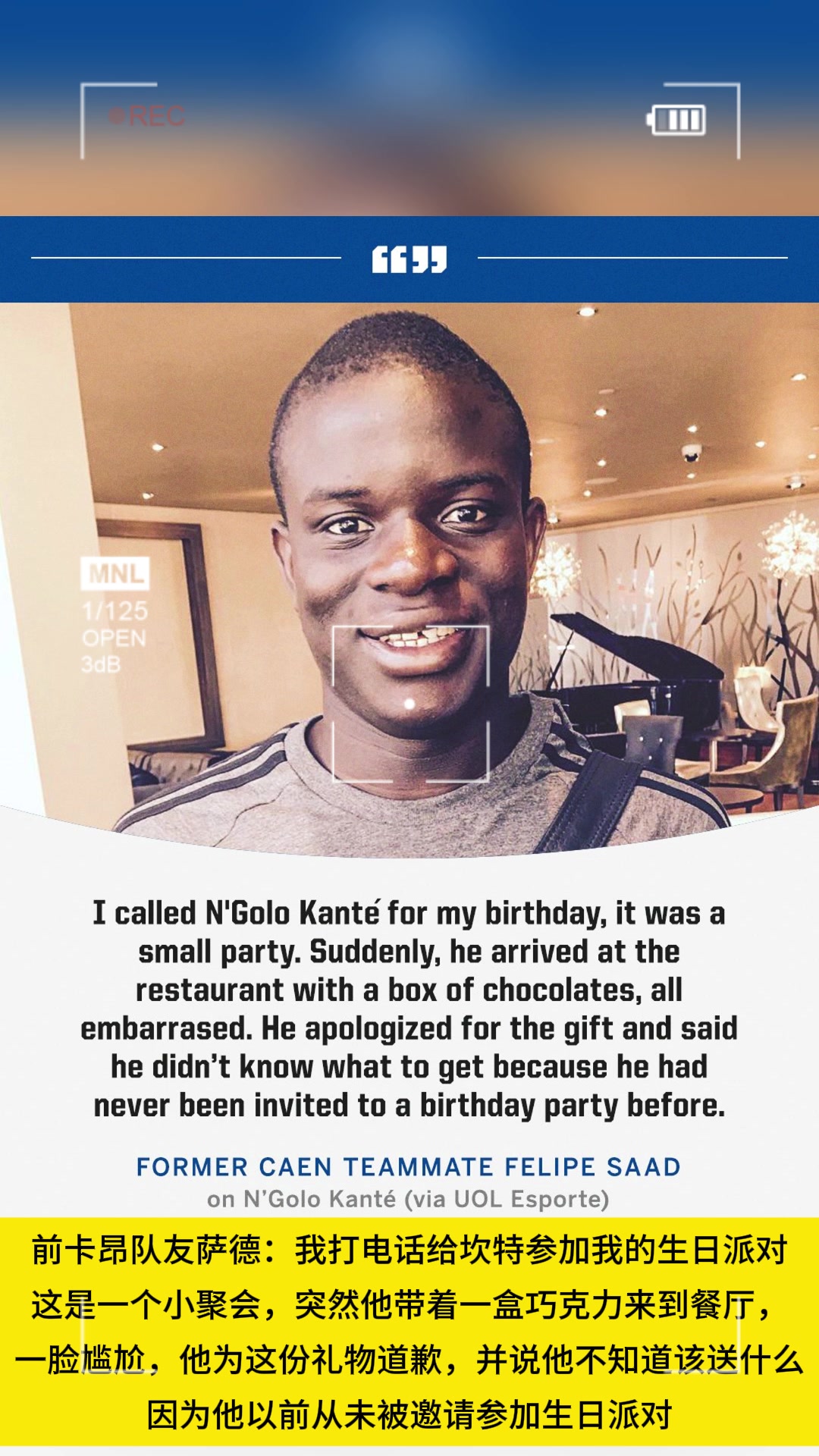 因礼物给队友道歉!坎特:以前从未被邀请参加生日派对